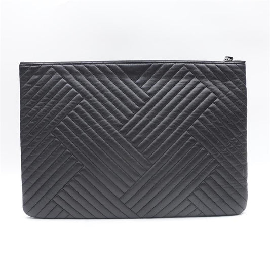Pre-owned Chanel Black Chervon Calfskin Clutch - TS