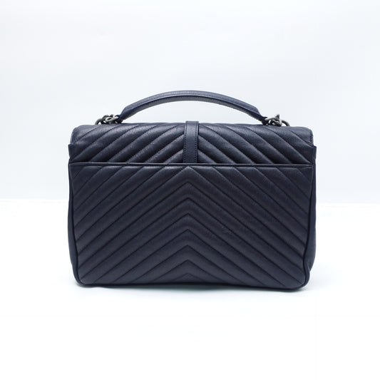 Pre-owned Saint Laurent College Navy Calfskin Shoulder Bag
