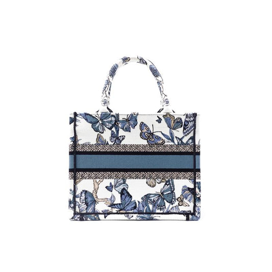 Pre-owned Dior Butterfly White & Bloue Book Tote Canvas Tote