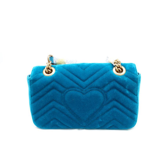 Pre-owned Gucci GG Marmont Lake Blue Velvet Shoulder Bag