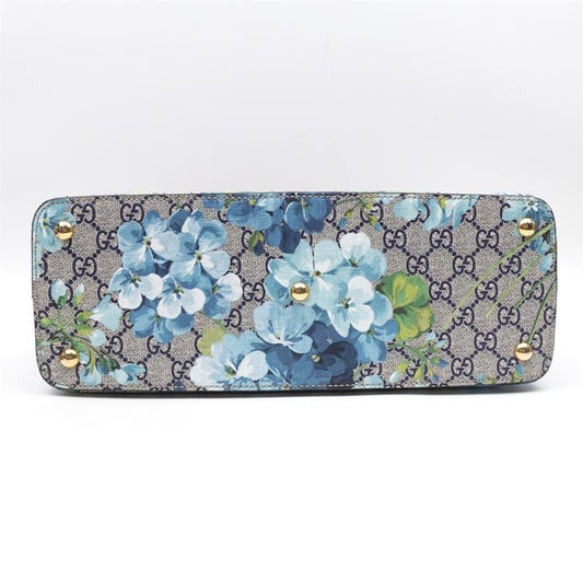 Pre-owned Gucci GG Bloom Blue Print Beige Coated Canvas Shoulder Bag