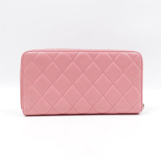 Pre-owned Chanel Pink Lambskin With Silver Hardware Long Zippy Wallet - HZ